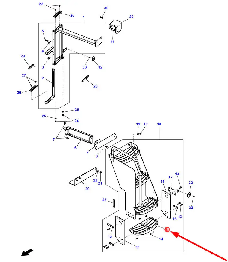 Oryginalny stopień schodów kabiny o numerze katalogowym 3785779M1, stosowany w ciągnikach rolniczych marek Massey Ferguson, Valtra, Challenger.