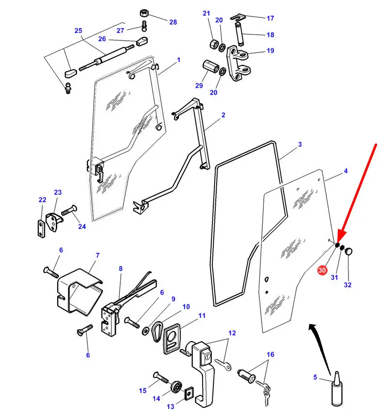 Oryginalna podkładka z tworzywa drzwi kabiny o numerze katalogowym 3805522M1, stosowana w ciągnikach rolniczych marek Challenger oraz Massey Ferguson.