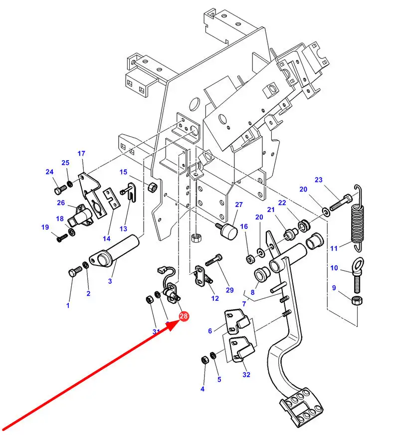 Oryginalny czujnik pedału sprzęgła o numerze katalogowym 3820032M1, stosowany w ciągnikach rolniczych marek Massey Ferguson, Challenger.