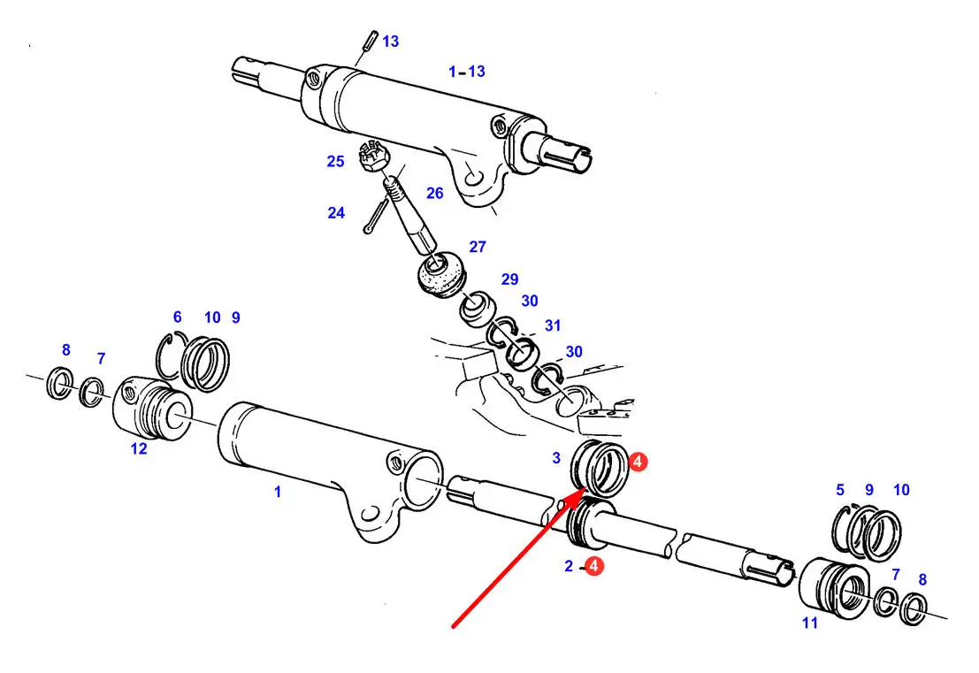 Pierścień zgarniający siłownika wspomagania kierownicy o numerze katalogowym 38706125, stosowany w ciągnikach rolniczych marek Challenger, Fendt oraz Massey Ferguson.