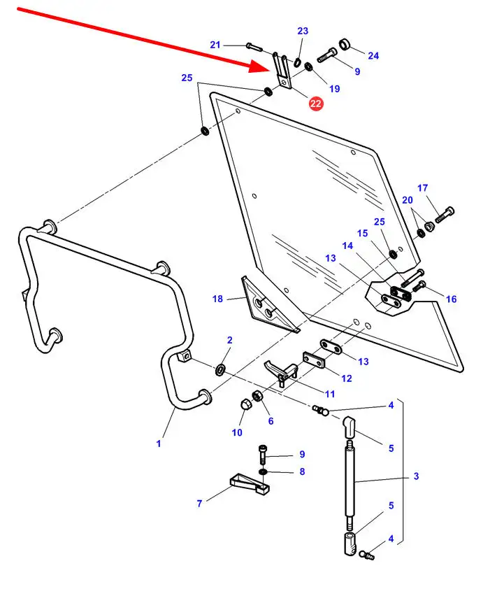 Oryginalny zawias okienny, mocowany w tylnej szybie kabiny, w ciągnikach rolniczych marki Massey Ferguson.