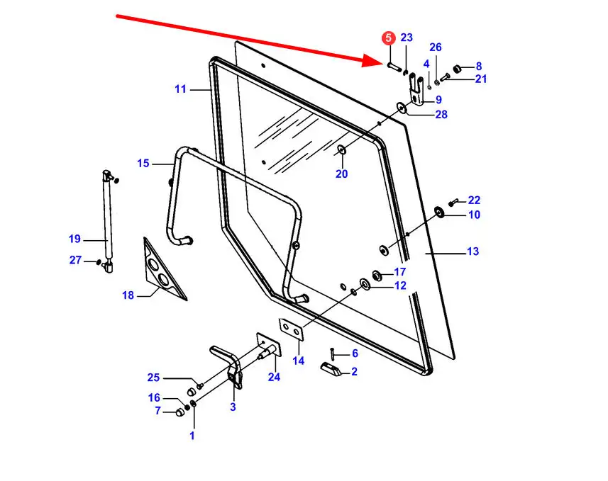Oryginalny sworzeń szyby tylnej o numerze katalogowym 3902137M1, stosowany w ciągnikach rolniczych marek Massey Ferguson i Challenger.