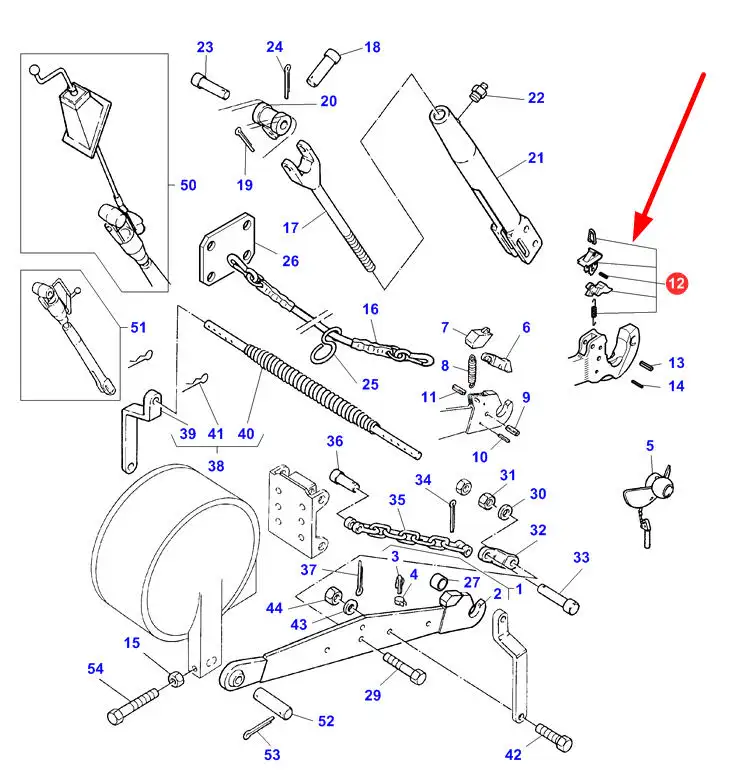 Oryginslny zatrzask kuli tylnrgo zaczepu, stosowany w ciągnikach marki Challenger oraz Massey Ferguson.