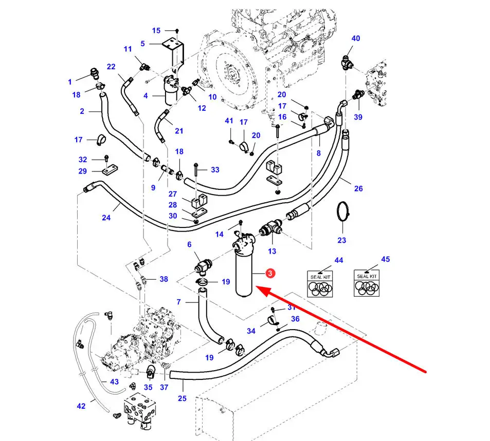 Oryginalny filtr oleju hydrauliki – wkład o numerze katalogowym 3970170M1, stosowany w ładowarkach teleskopowych marki Massey Ferguson.