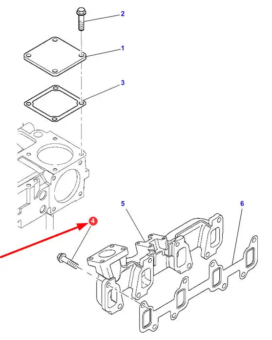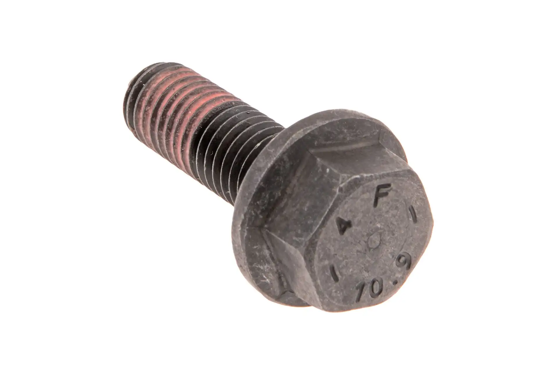 Oryginalna śruba 6-kątna z kołnierzem, pełny gwint kolektora wydechowego o wymiarach M10 x 30 x 1,5, klasie twardosci 10,9 i numerze katalogowym 4222341M1, stosowana w ciągnikach rolniczych marek Massey Ferguson oraz Valtra.