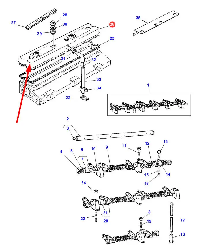 Oryginalna pokrywa zaworowa, stosowana w ciągnikach rolniczych marki Massey Ferguson.