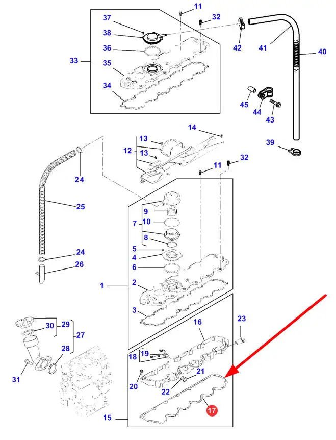 Oryginalna uszczelka pokrywy zaworowej, stosowana w ciągnikach marki Massey Ferguson.