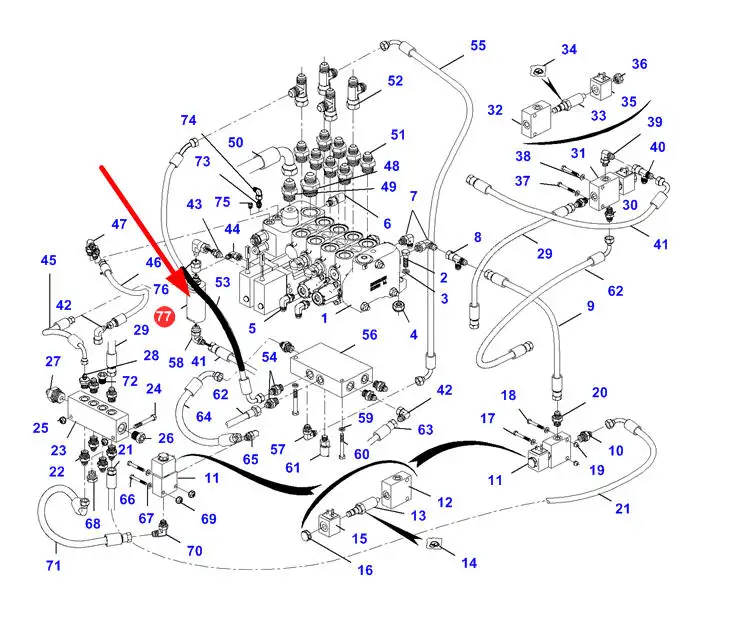 Oryginalny filtr przepływowy zaworu o numerze katalogowym 4238298M1, stosowany w ładowarkach teleskopowych marki Massey Ferguson.