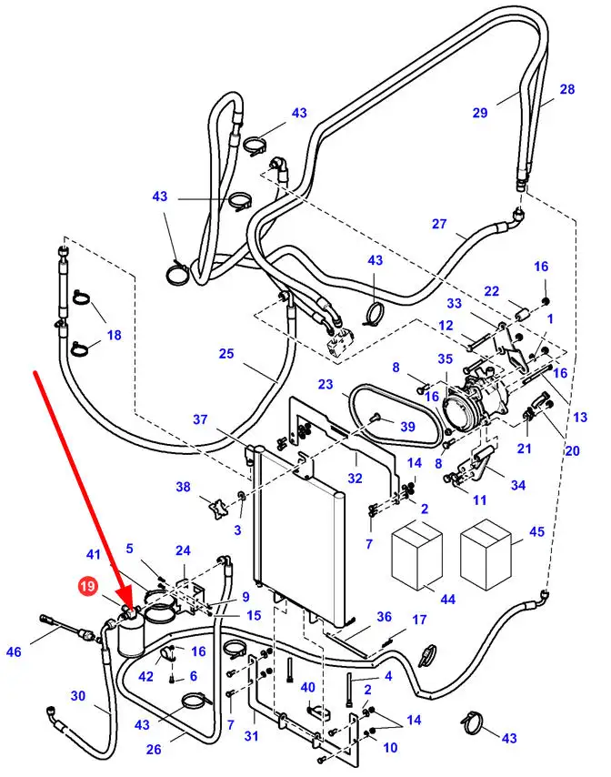 Oryginalny filtr osuszacz klimatyzacji o numerze katalogowym 4240474M1, stosowany w ładowarkach marki Massey Ferguson.
