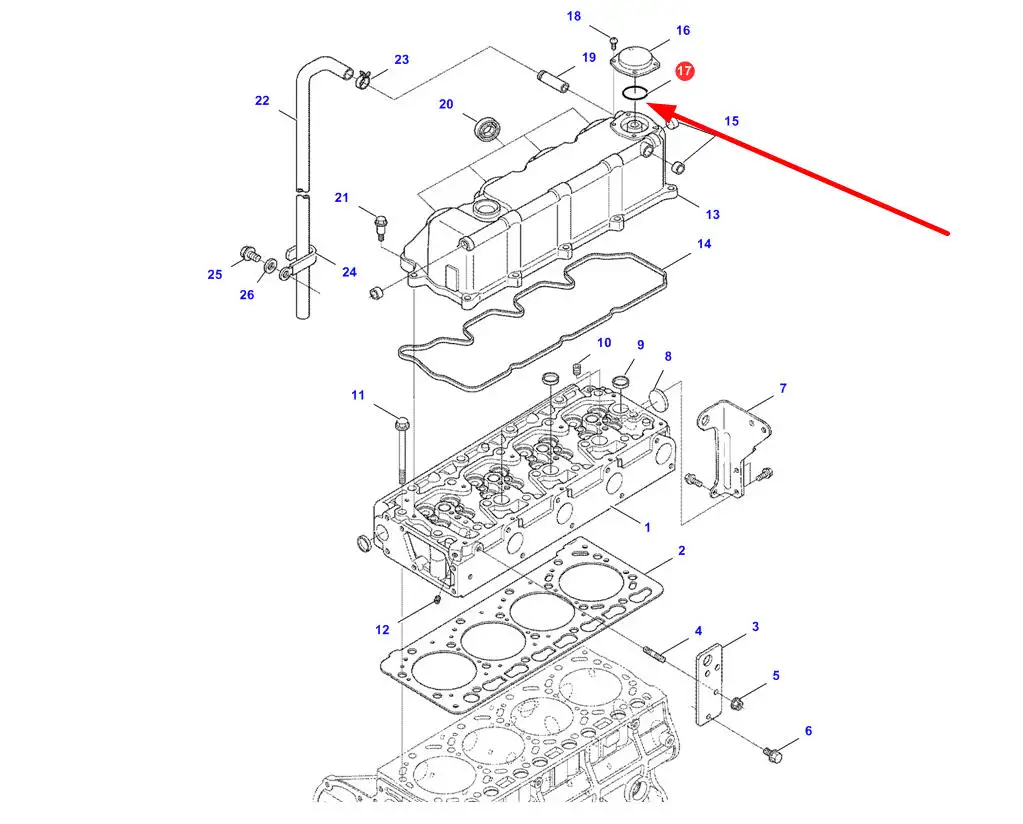 Oryginalny pierścień oring pokrywy zaworowej o numerze katalogowym 4241740M1, stosowany w ładowarkach teleskopowych marki Massey Ferguson.