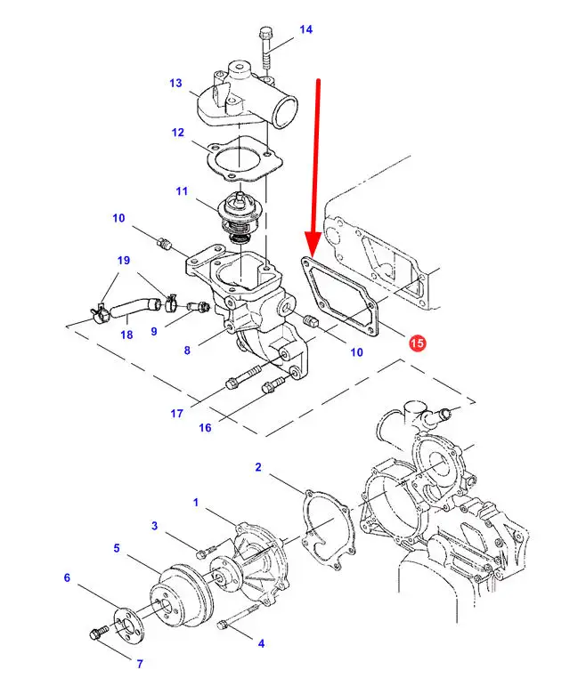 Oryginalna uszczelka obudowy termostatu o numerze katalogowym 4241747M1, stosowana w ładowarkach marki Massey Ferguson.
