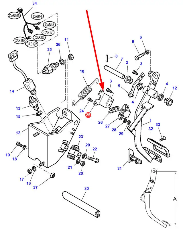 Oryginalny uchwyt mocujący pedał sprzęgła o numerze katalogowym 4270192M1, stosowany w ciągnikach marek Challenger oraz Massey Ferguson.