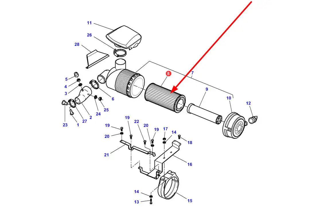 Filtr powietrza, tak jak filtr powietrza AGCO 4271467M1, składa się z kilku istotnych elementów. W jego konstrukcji można znaleźć: