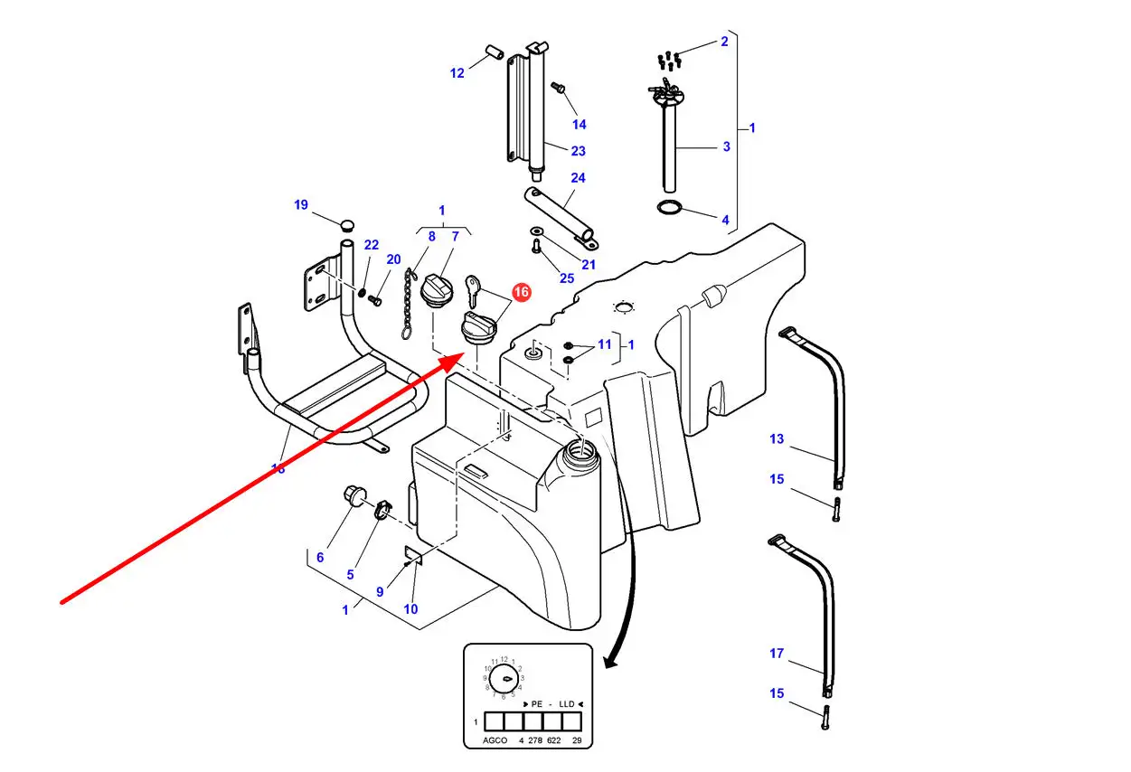 Oryginalny korek zbiornika paliwa o numerze katalogowym 4274363M1, stosowany w ciagnikach rolniczych marek Massey Ferguson, Fendt, Valtra i Challenger.