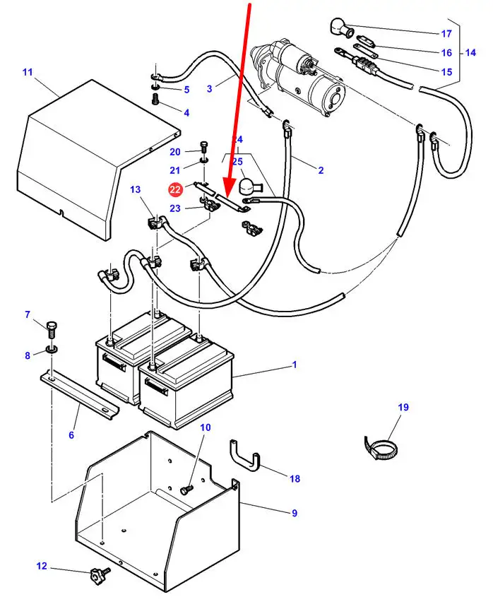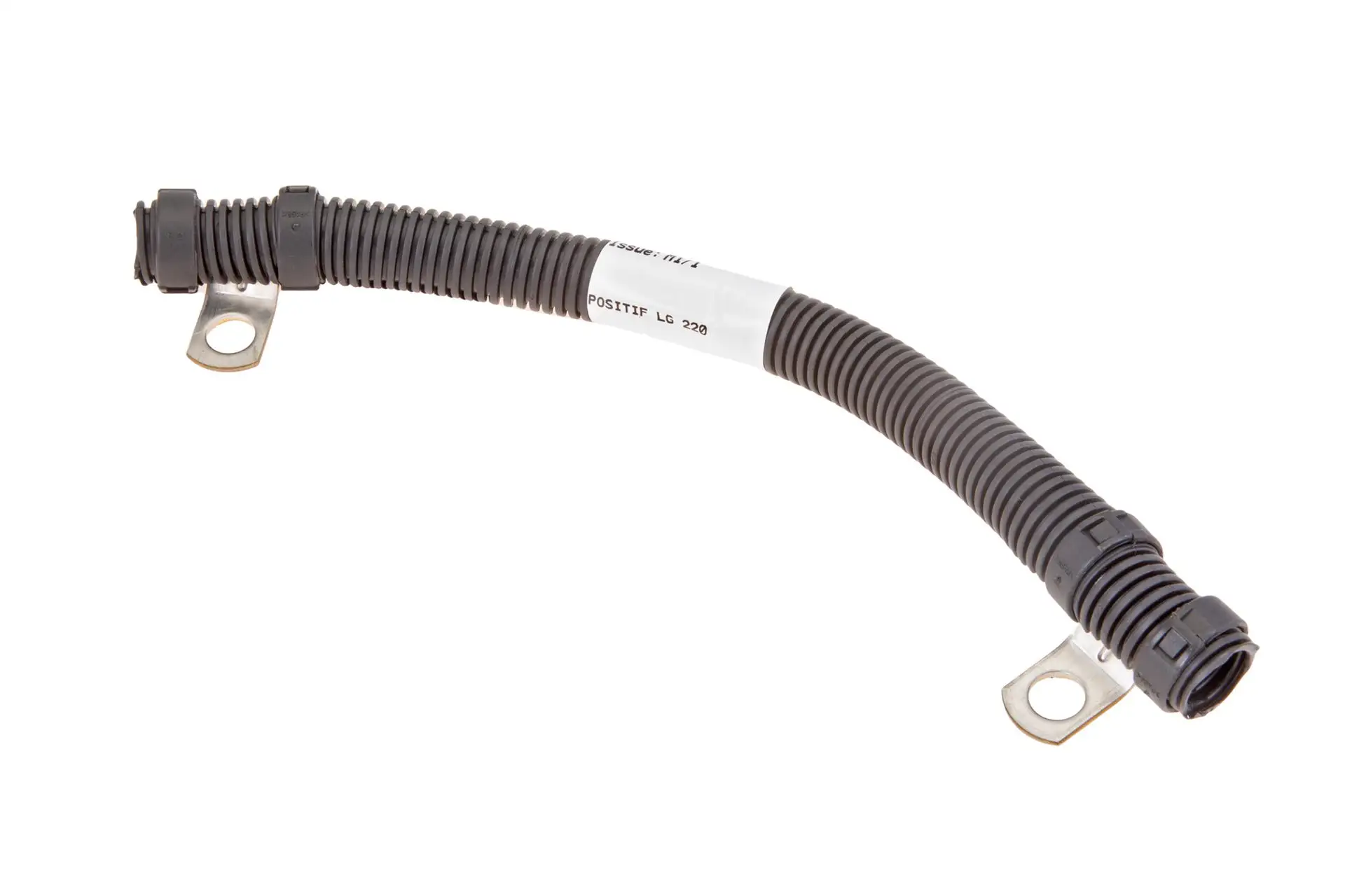 Oryginalny przewód akumulatora o długości 220 mm i numerze katalogowym 4276943M1, stosowany w ciągnikach rolniczych marki Massey Ferguson.