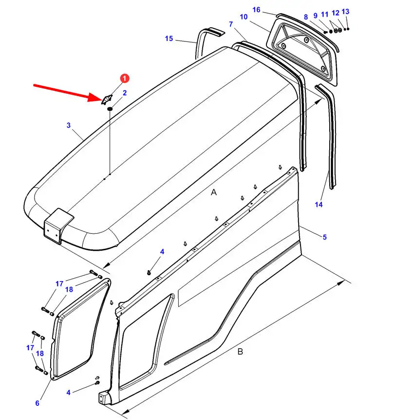 Oryginalna zaślepka przedniej maski o numerze katalogowym 4284056M2, stosowany w ciągnikach marek Challenger oraz Massey Ferguson.