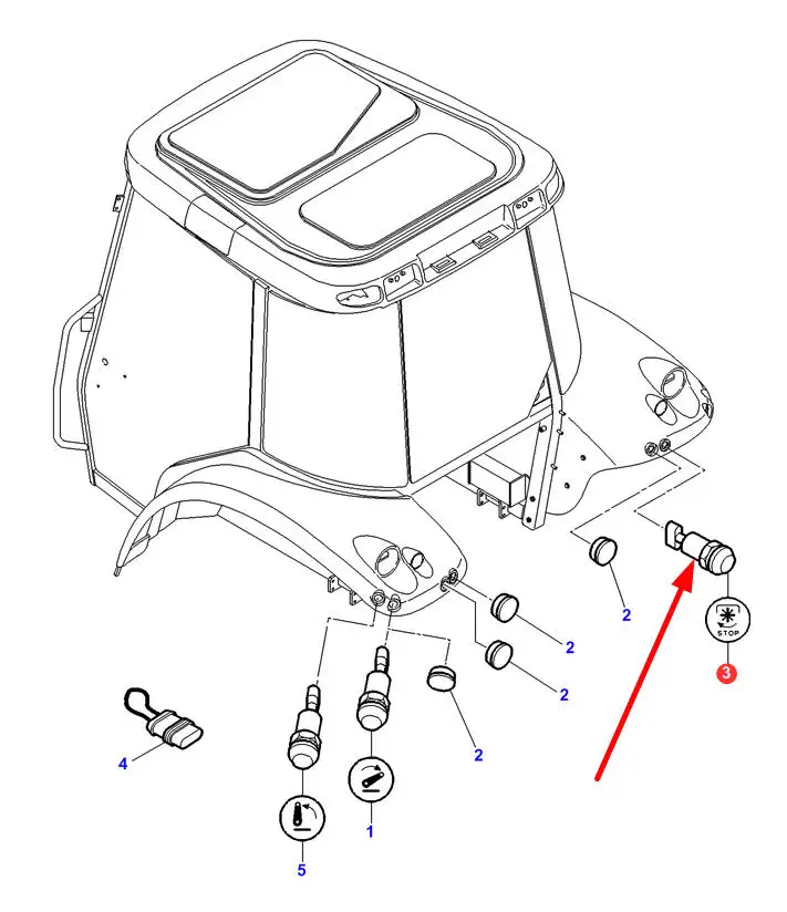 Oryginalny przełącznik stop wałka WOM o numerze katalogowym 4284626M1, stosowany w ciągnikach rolniczych marek Massey Ferguson oraz Challenger.