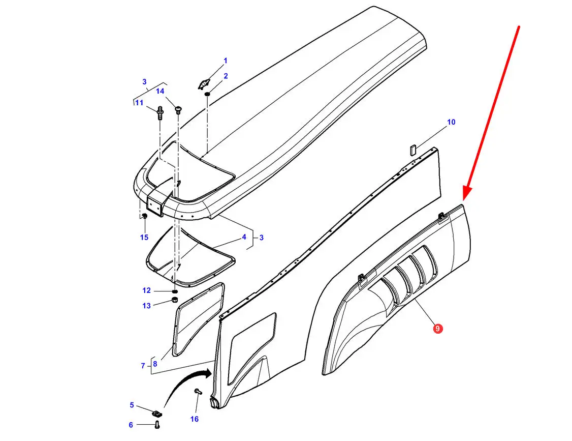 Oryginalny lewy element maski o numerze katalogowym 4285904M2, stosowany w ciągnikach rolniczych marek Massey Ferguson i Challenger.