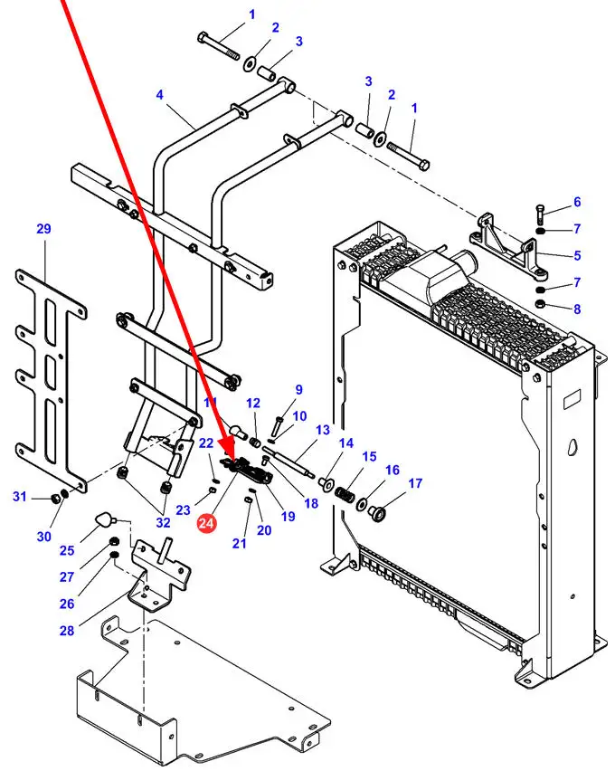 Oryginalny uchwyt mocujący układ chłodniczy o numerze katalogowym 4286171M1, stosowany w ciągnikach rolniczych marki Massey Ferguson oraz Challenger.