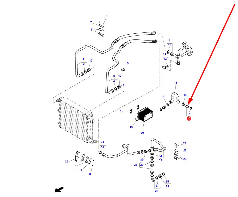Oryginalny łącznik przewodów chłodnicy oleju o numerze katalogowym 4291630M2, stosowany w ciągnikach rolniczych marki Massey Ferguson, Valtra.