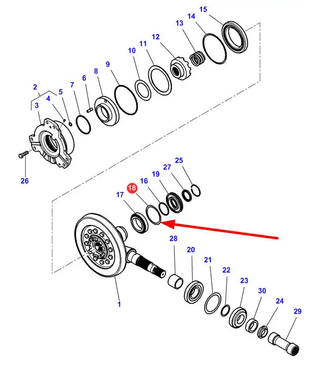 Oryginalna podkładka dystansowa mechanizmu różnicowego o wymiarach 85-99,5 x 0,5 mm i numerze katalogowym 4300026M1, stosowana w ciągniakch rolniczych marek Challenger, Valtra oraz Massey Ferguson.