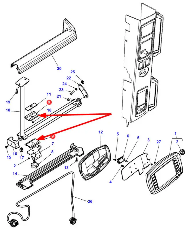 Oryginalne mocowanie komputera pokładowego o numerze katalogowym 4352997M2, stosowane w ciągnikach marek Challegner oraz Massey Ferguson.