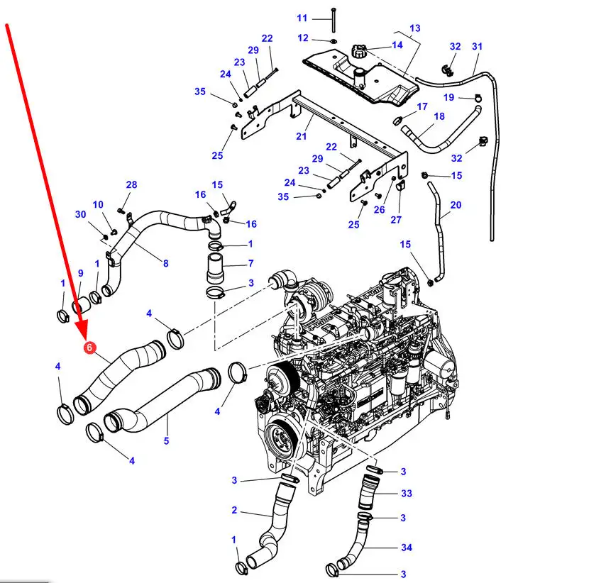 Oryginalny przewód układu chłodzenia o numerze katalgowym 4356588M1, stosowany w ciągnikach rolniczych marki Massey Ferguson i Challenger.