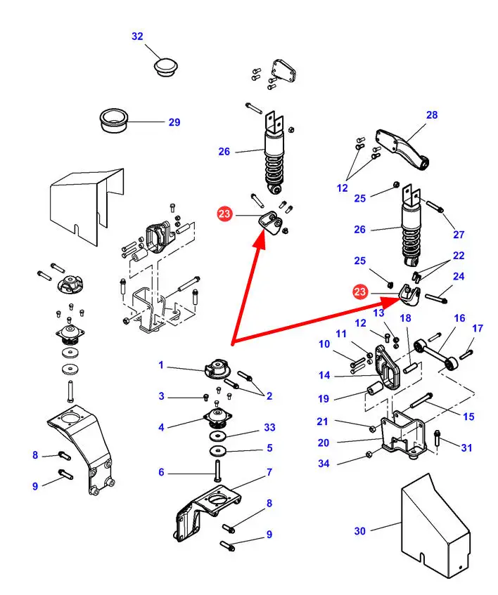 Oryginalne mocowanie kabiny, stosowane w ciągnikach marki Challanger oraz Massey Ferguson.