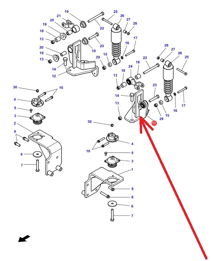 Oryginalny uchwyt lewy amortyzatora kabiny o numerze katalogowym 4377560M95, stosowany w ciągnikach rolniczych marki Massey Ferguson.