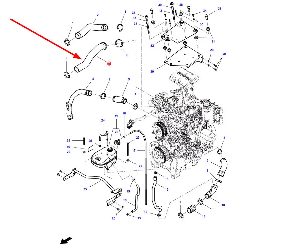 Oryginalny przewód chłodzenia silnika o numerze katalogowym 4377671M2, stosowany w ciągnikach rolniczych marki Massey Ferguson.