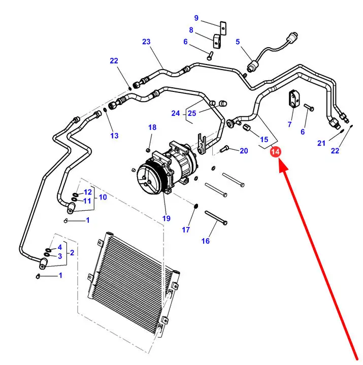 Oryginalny przewód układu klimatyzacji o numerze katalogowym 4391491M1, stosowany w ciągnikach rolniczych marki Massey Ferguson.