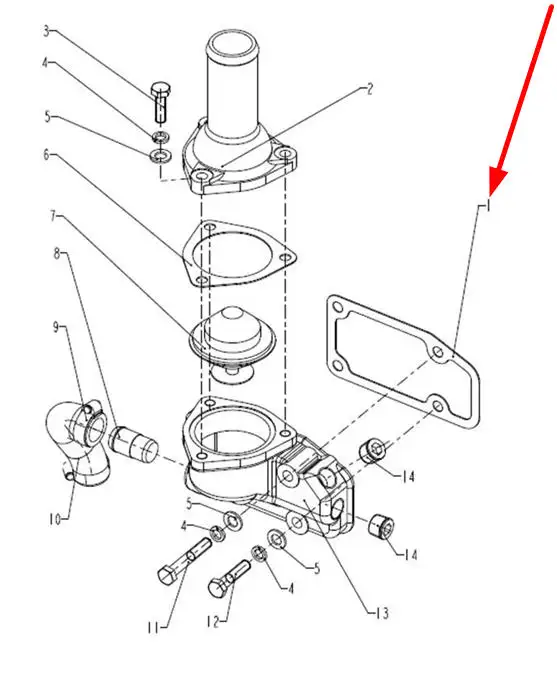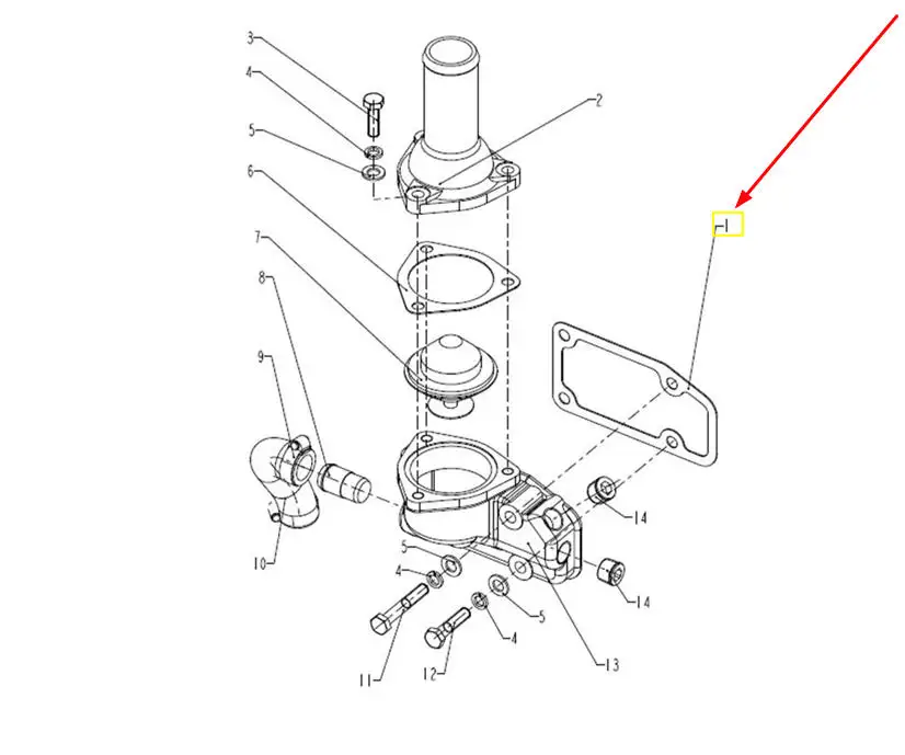 Oryginalna uszczelka obudowy termostatu o numerze katalogowym 490B-43005, stosowana w ciągnikach rolniczych marek Arbos oraz Lovol.