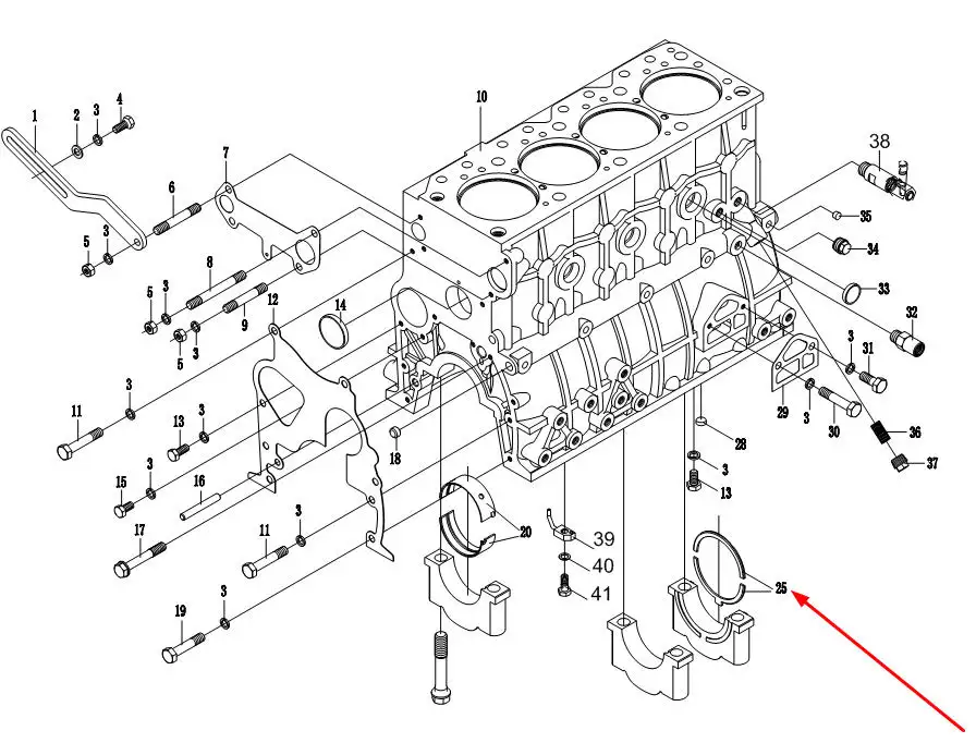 Oryginalny element oporowy wału korbowego o numerze katalogowym 4L22-01007/01008, stosowany w ciągnikach rolniczych marek Arbos i Lovol.