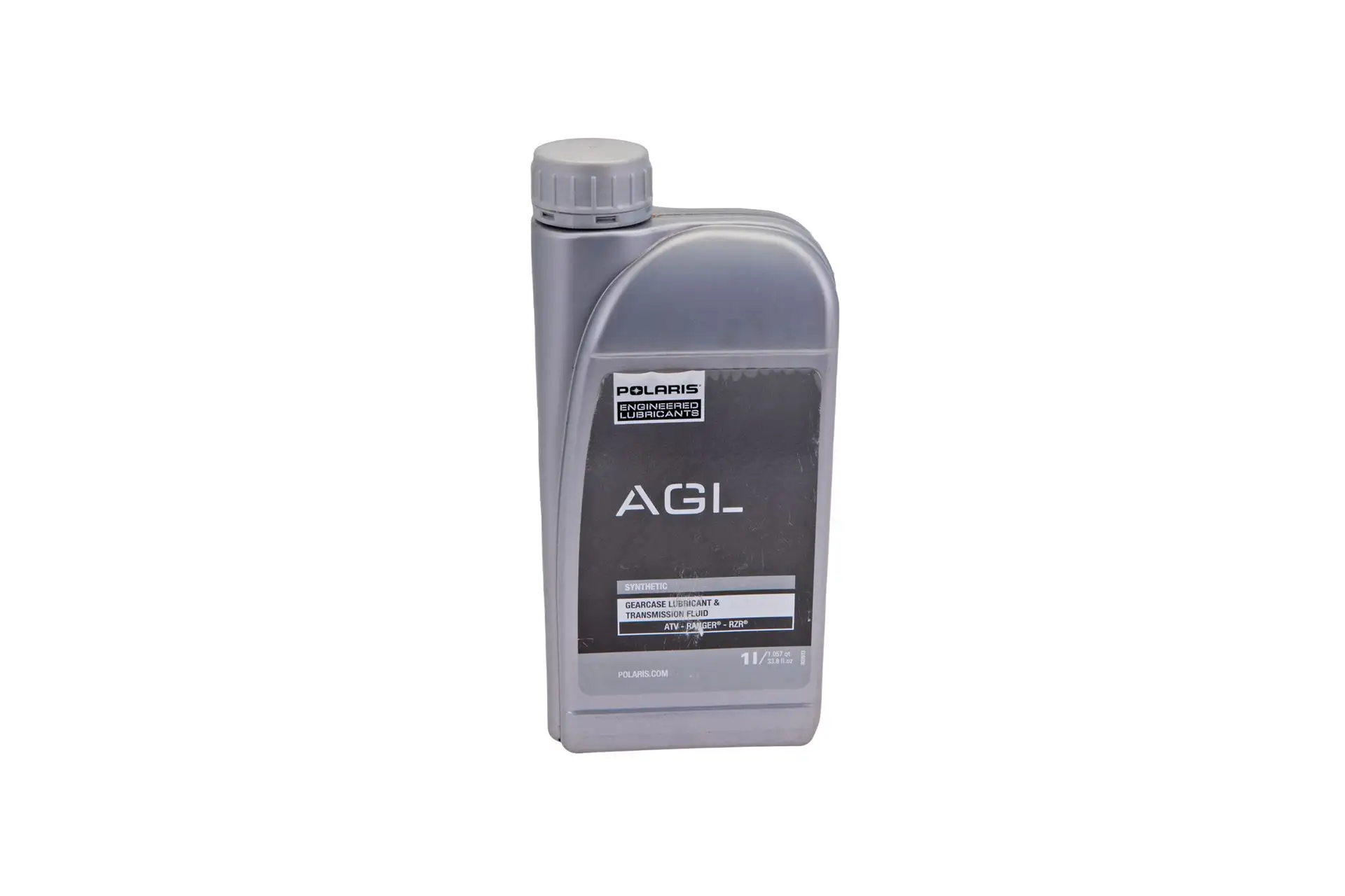 Oryginalny olej przekładniowy AGL w opakowaniu o pojemności 1 litra i numerze katalogowym 502080, stosowany w skrzyniach biegów i tylnych mostach quadów marki Polaris serii ATV, Ranger, RZR.