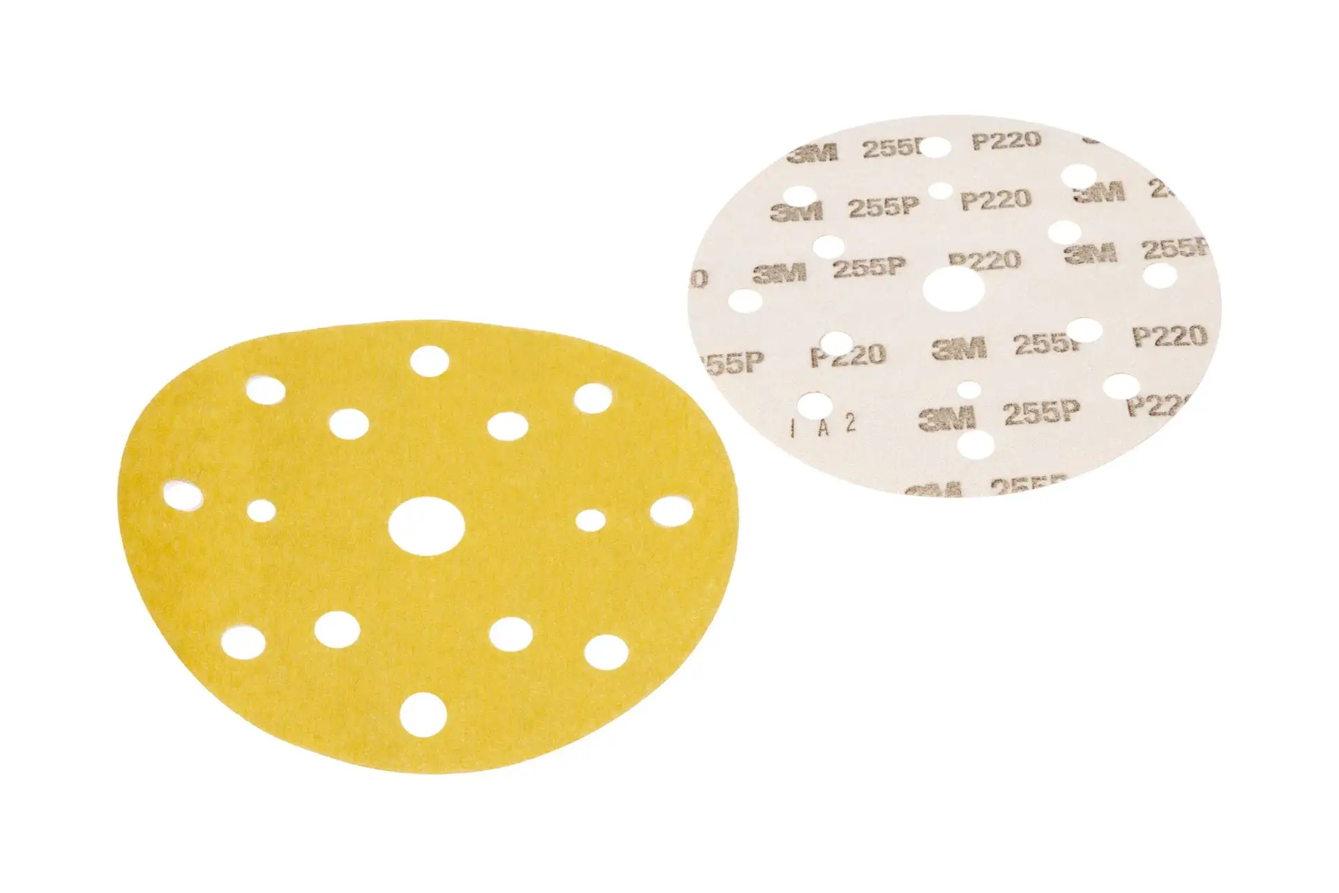 Krążek przyczepny z otworami marki 3M Hookit o granulacji 220 i średnicy 225 mm, stosowany do różnorodnych prac szlifierskich.