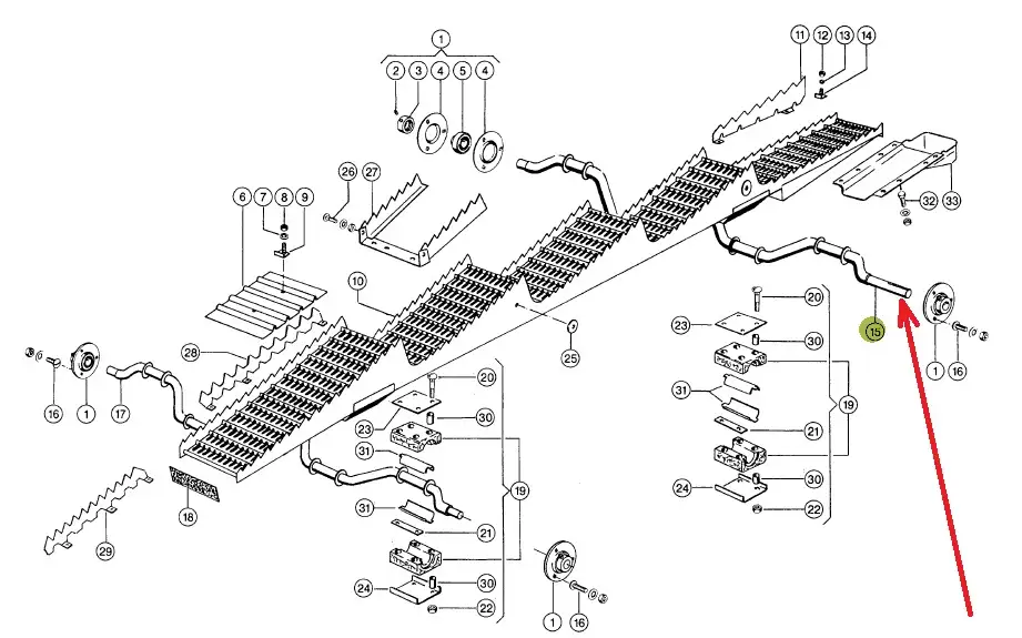 Oryginalny, tylny wał wytrząsaczy o numerze katalogowym 513826.0, stosowany w kombajnach zbożowych marki Claas.