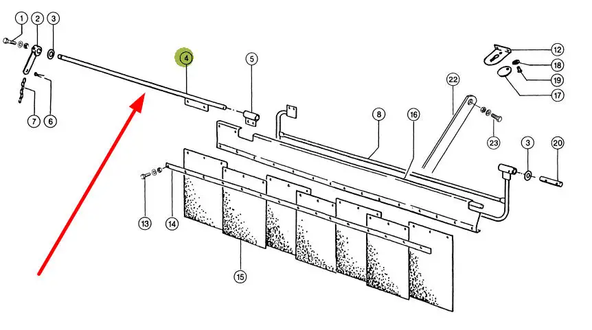 Oryginalny drążek obrotowy, stosowany w fartuchu przeciwodpryskowym odrzutnika słomy w kombajnach zbożowych marki Claas.