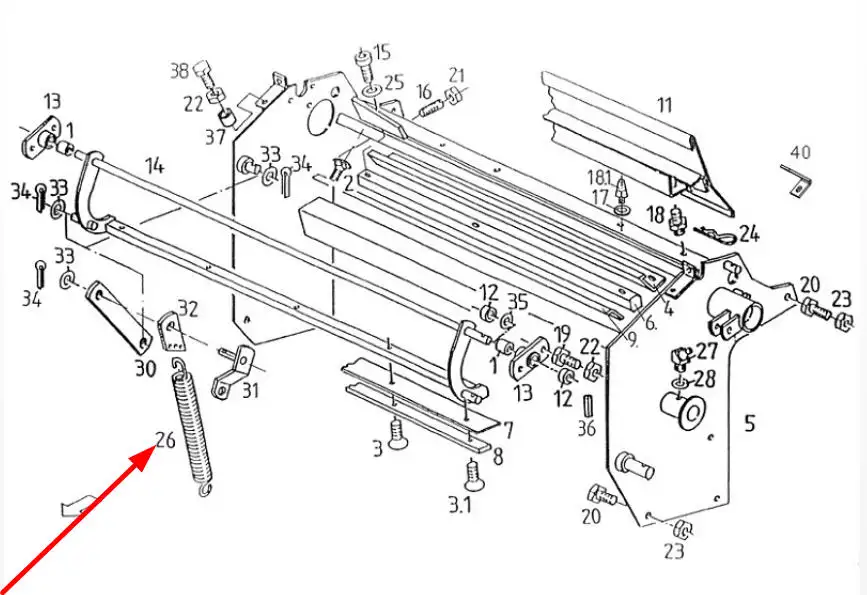 Oryginalna sprężyna o numerze katalogowym 5595/017-02-016, stosowana w prasach zwijających, owijarkach, prasoowijarkach marki Unia.