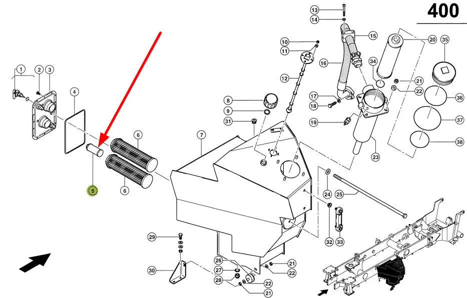 Oryginalny wkład filtra oleju hydrauliki o numerze katalogowym 596906.0, stosowany w ciągnikach rolncizych marki Claas.