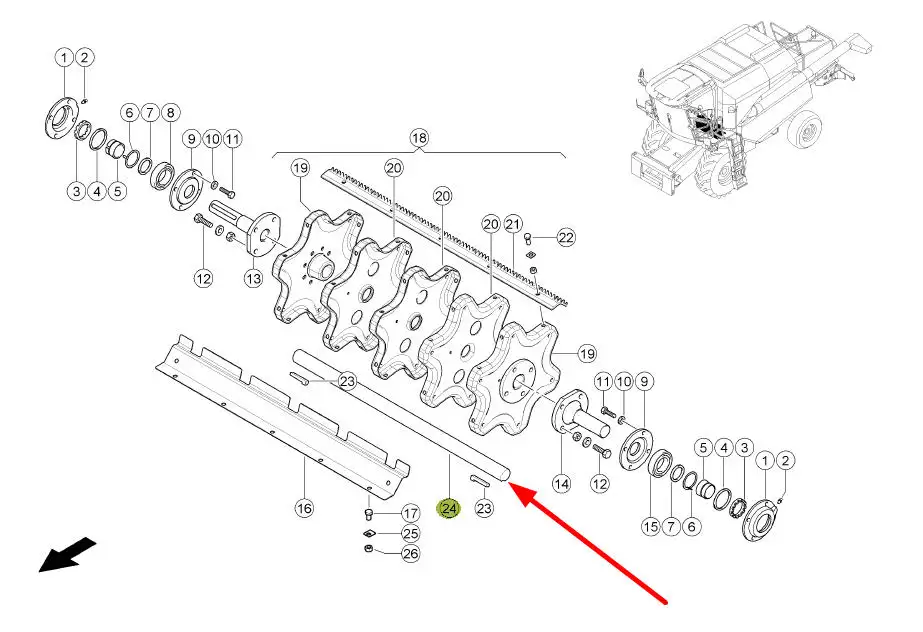 Oryginalny wał bębna młócącego, stosowany w kombajnach zbożowych marki Claas.