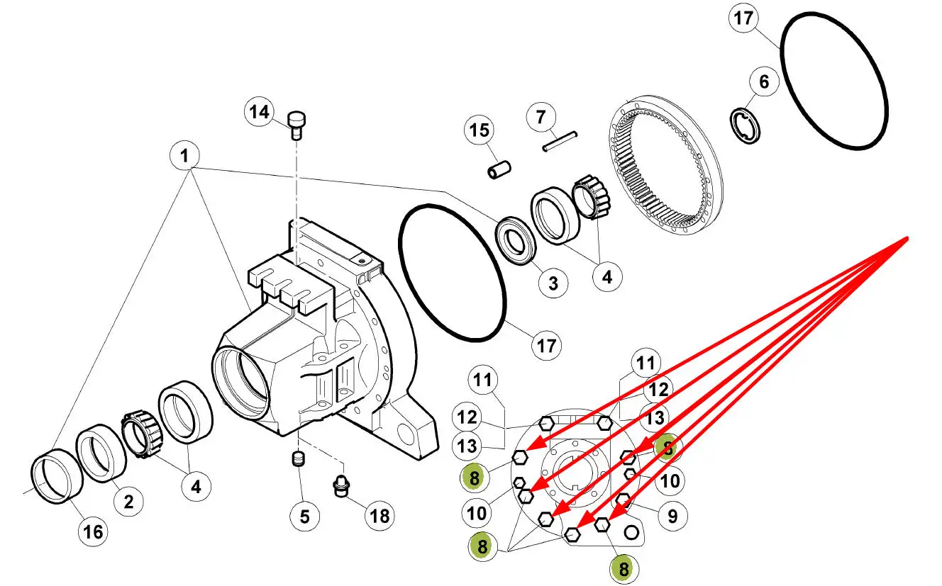 Oryginalna śruba mocowania tylnego mostu o wymiarach M16 x 170 i numerze katalogowym 6005028060, stosowana w ciągnikach rolniczych marki Claas.