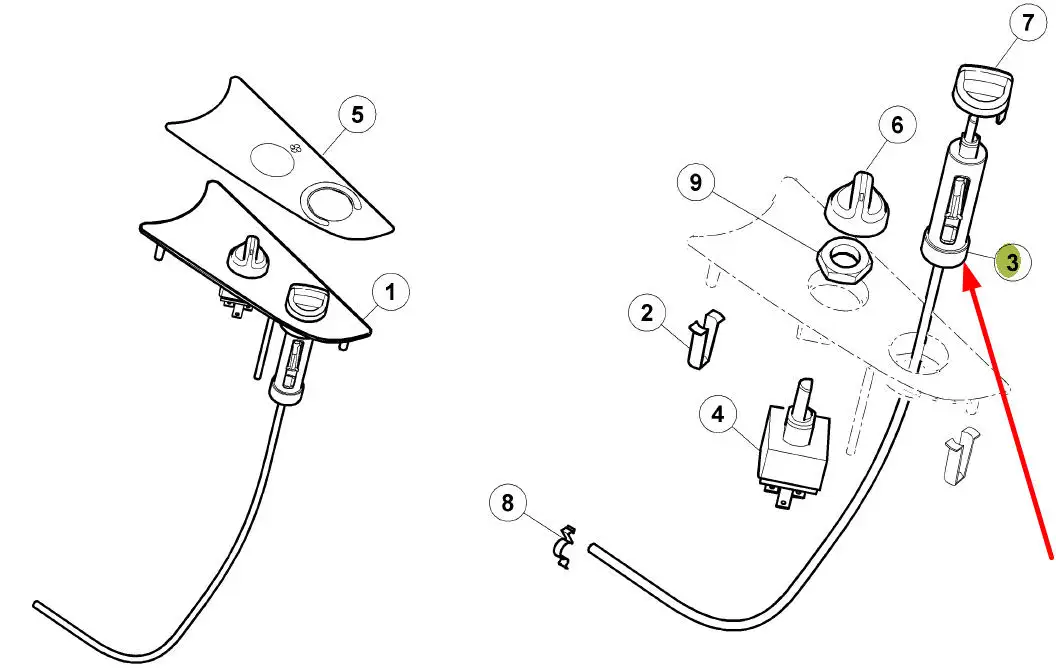 Oryginalna linka sterowania ogrzewaniem kabiny o numerze katalogowym 6005029015, stosowana w ciągnikach marek Renault oraz Claas.