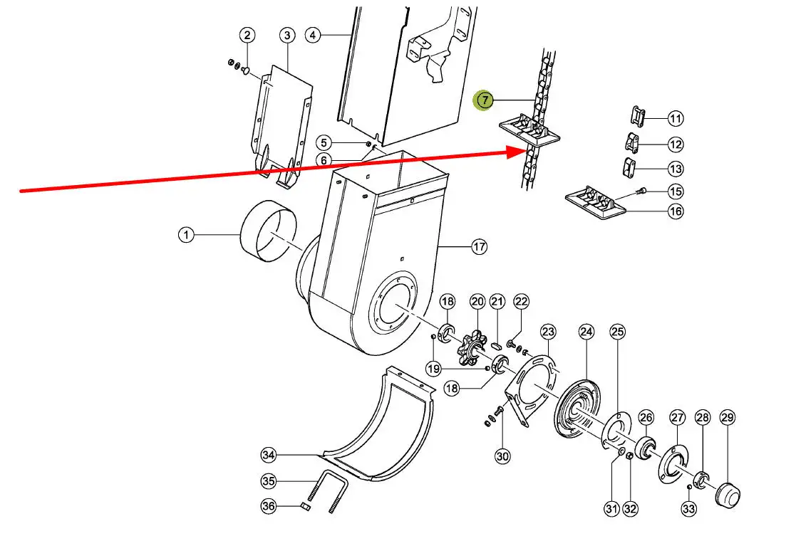 Łańcuch elewatora ziarnowego 38,4-V x 139 rolek, 34 łopatki 601596.0