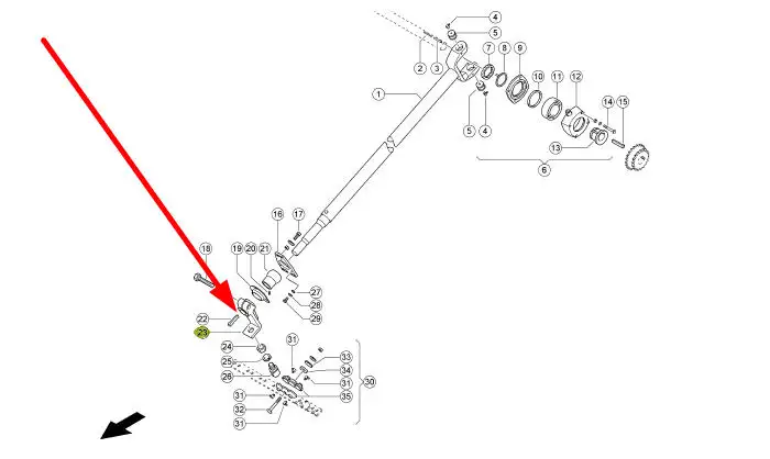 Ramię napędu kosy o numerze katalogowym 613307.00, stosowane w kombajnach zbożowych marki Claas.