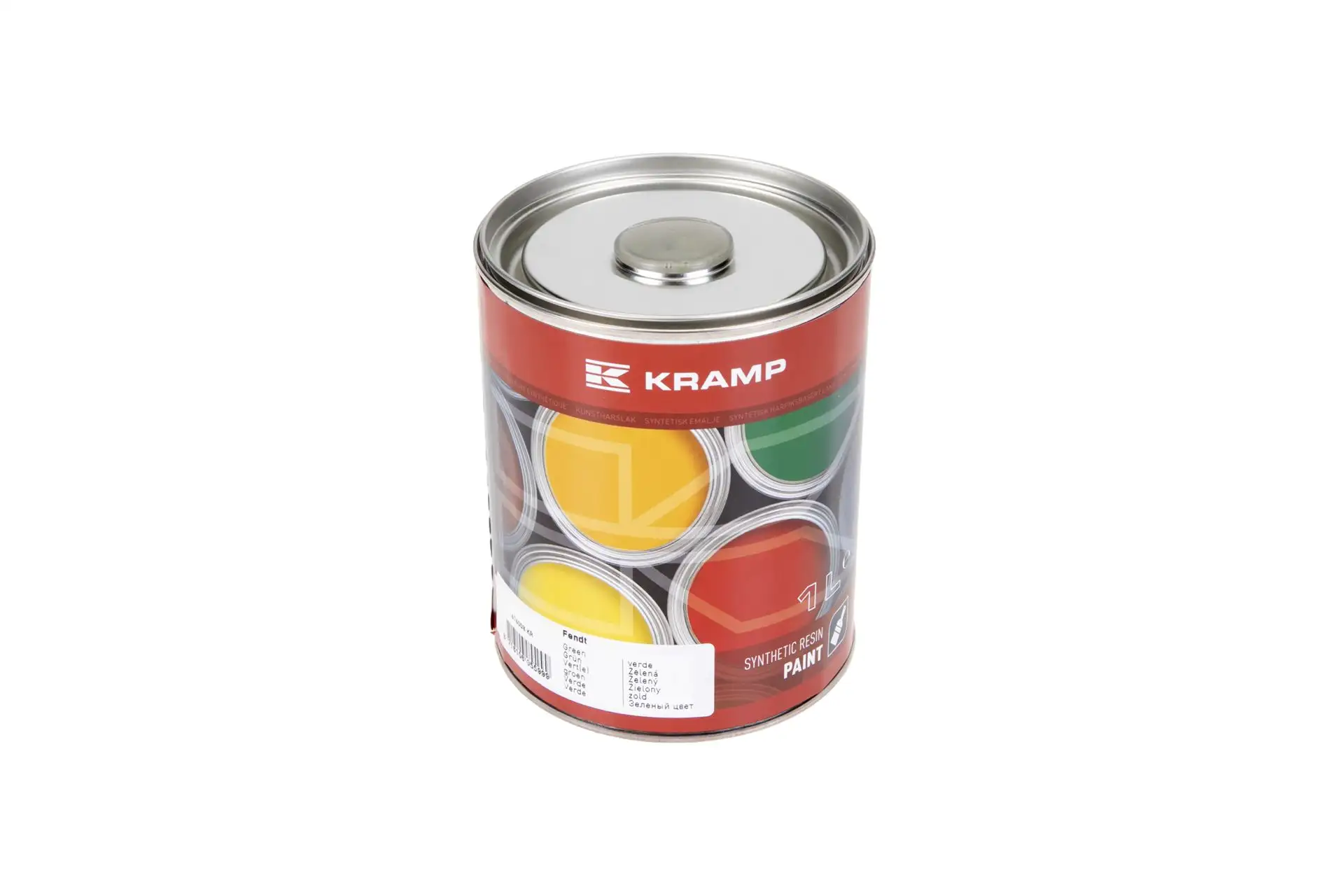 Lakier zielony w opakowaniu o pojemności 1 litra o numerze katalogowym 616008KR, stosowany do malowania maszyn rolniczych marki Fendt.
