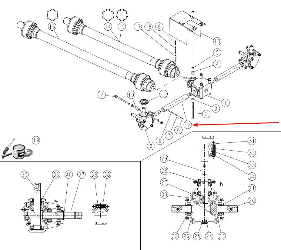 Oryginalny łącznik przekładni o numerze katalogowym 622054, stosowany w rozsiewaczach marki Sulky.