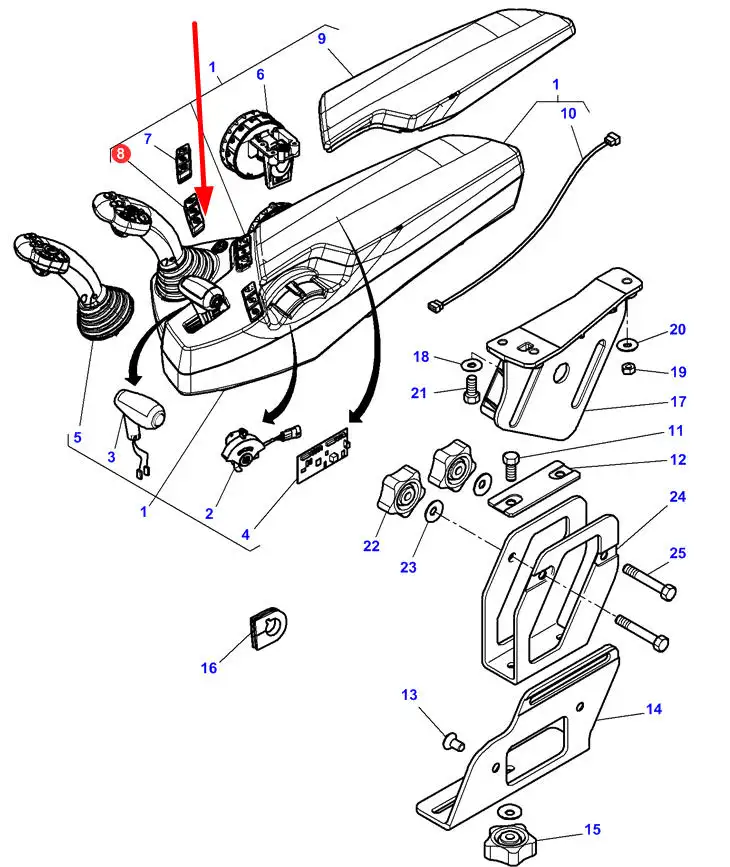 Oryginalny przełącznik elektryczny pulpitu sterującego o numerze katalogowym 6249013M91, stosowany w ciągnikach rolniczych marek Challenger oraz Massey Ferguson.
