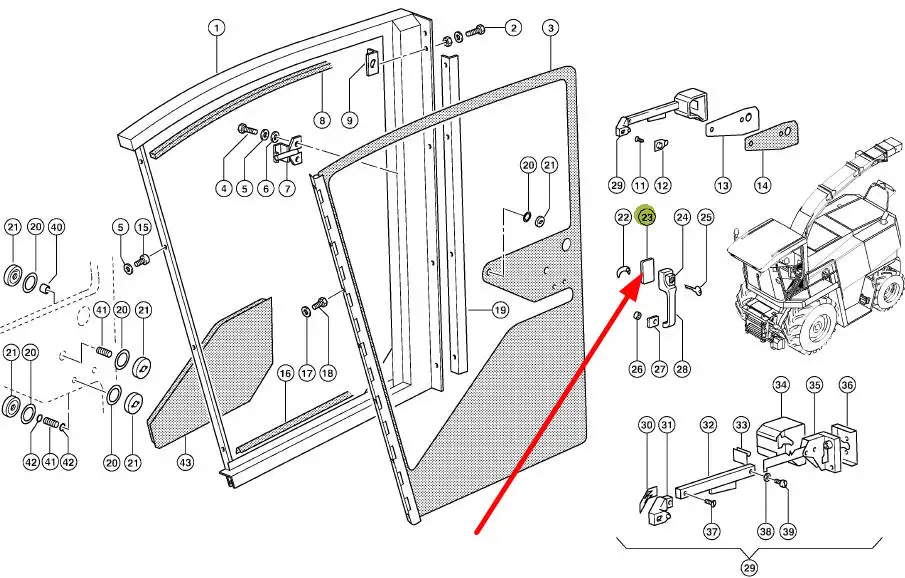 Oryginalna podkładka klamki drzwi o numerze katalogowym 625723.0, stosowana w kombajnach zbożowych, sieczkarniach samojezdnych oraz ciągnikach rolniczych marki Claas.