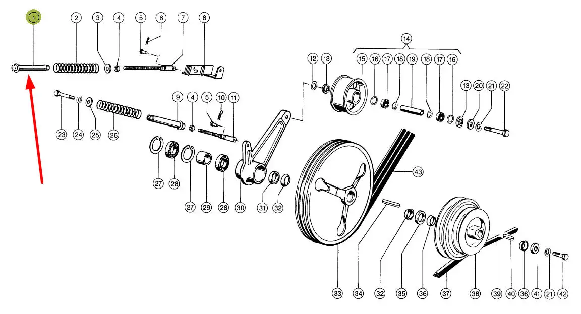 Oryginalna śruba napinacza koła pasowego, stosowana w kombajnach zbożowych marki Claas.