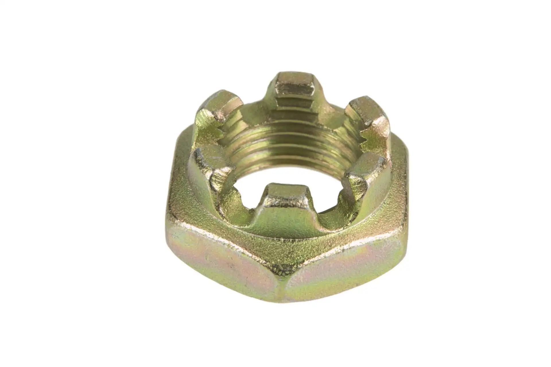 Oryginalna nakrętka koronowa o rozmiarze M14 x 1.5, i numerze katalogowym 631135.0, stosowana w maszynach rolniczych marki Claas.